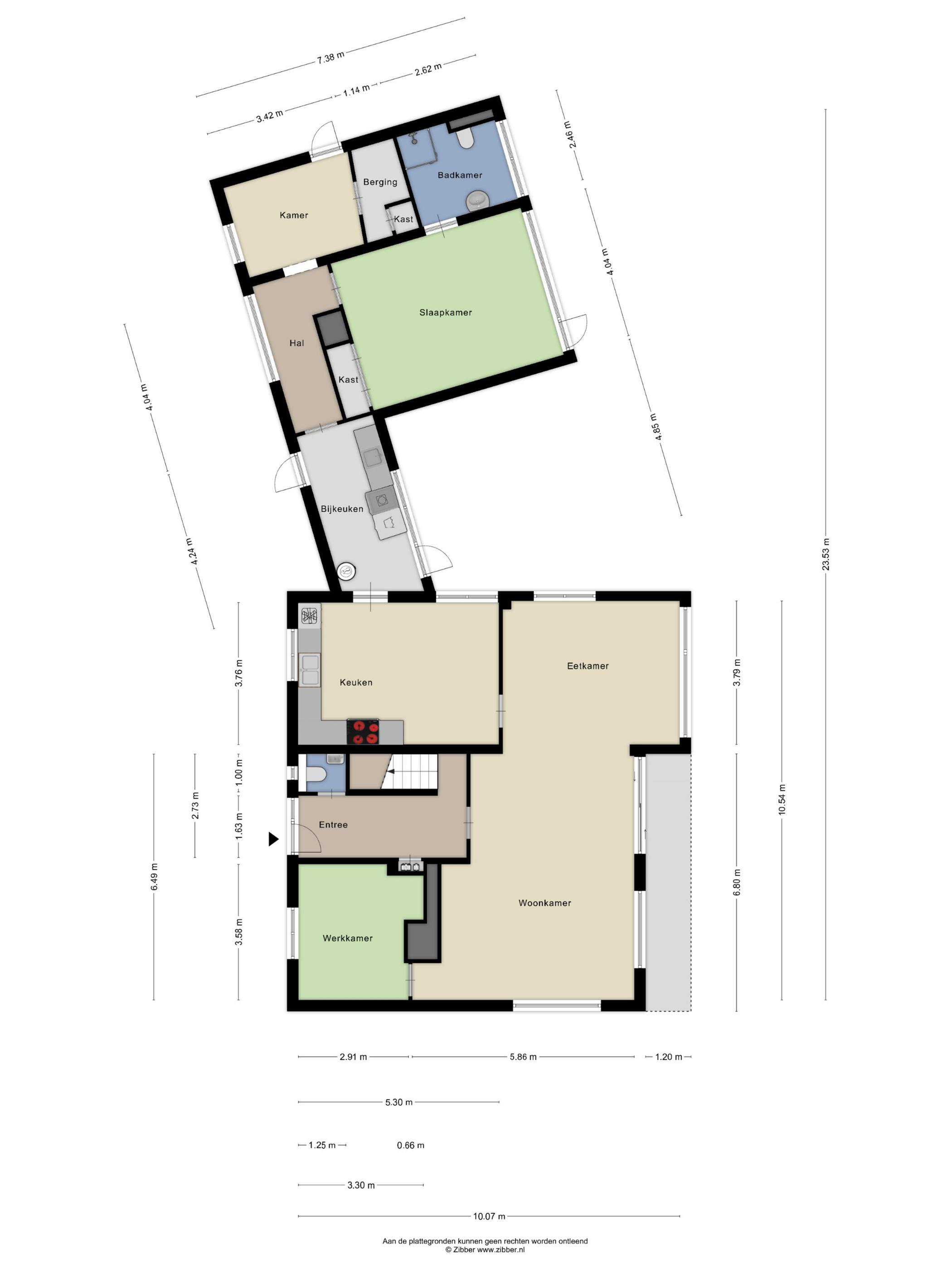 De bijkeuken is tevens vanaf de straat bereikbaar, waardoor dit eveneens als aparte entree kan dienen voor bijvoorbeeld een beroep aan huis.