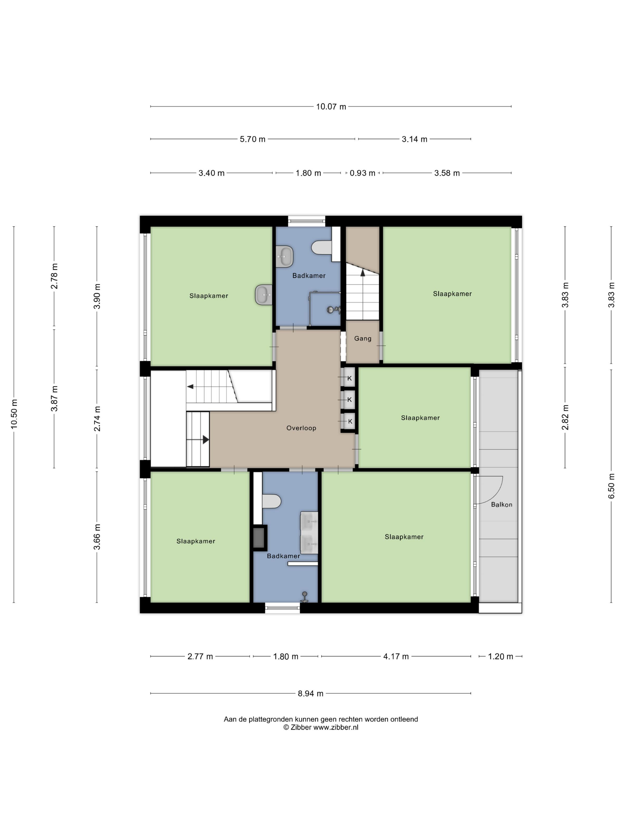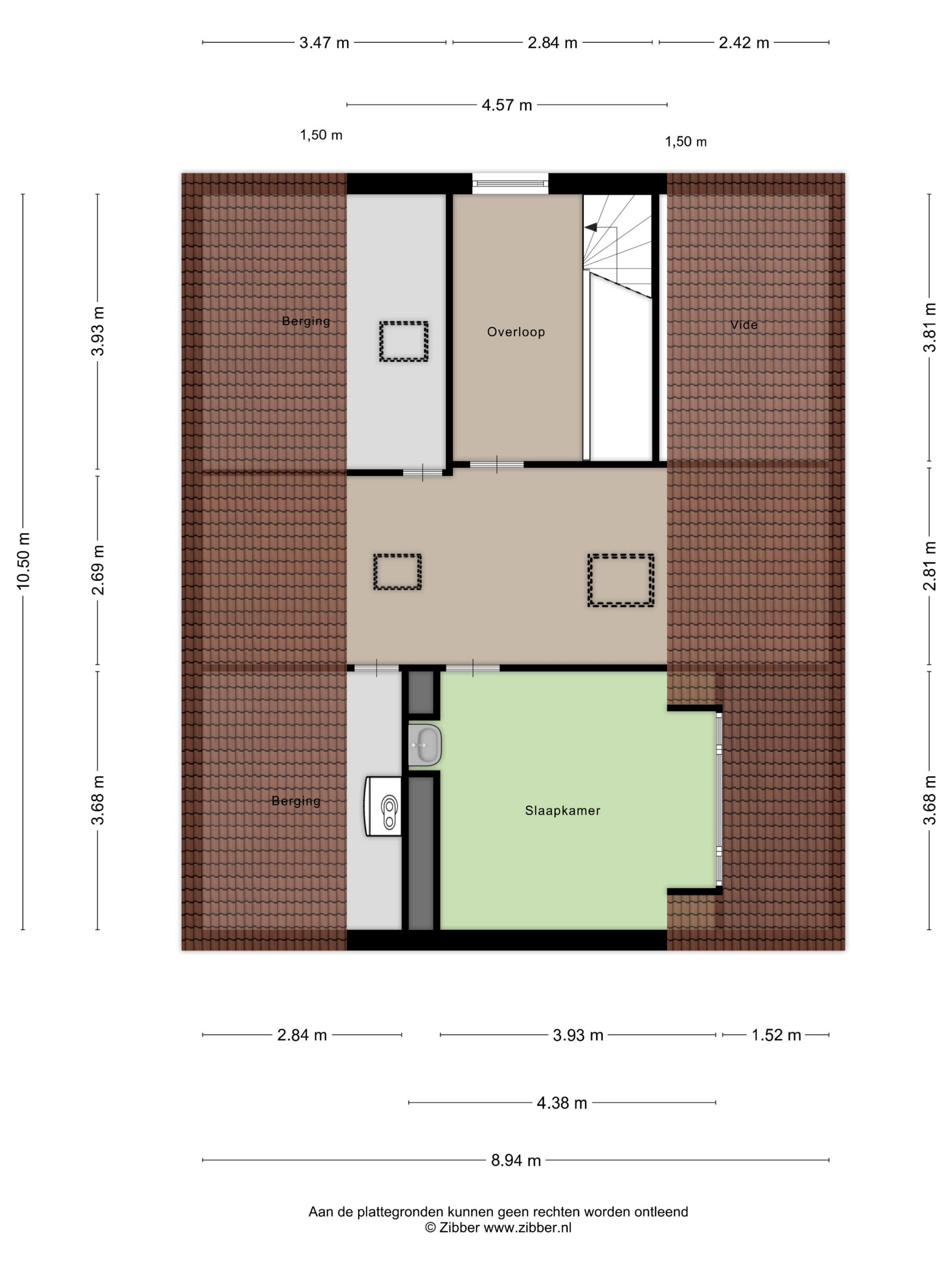 Vanuit de overloop is via een kleine gang de vaste trap naar de zolderverdieping bereikbaar.
