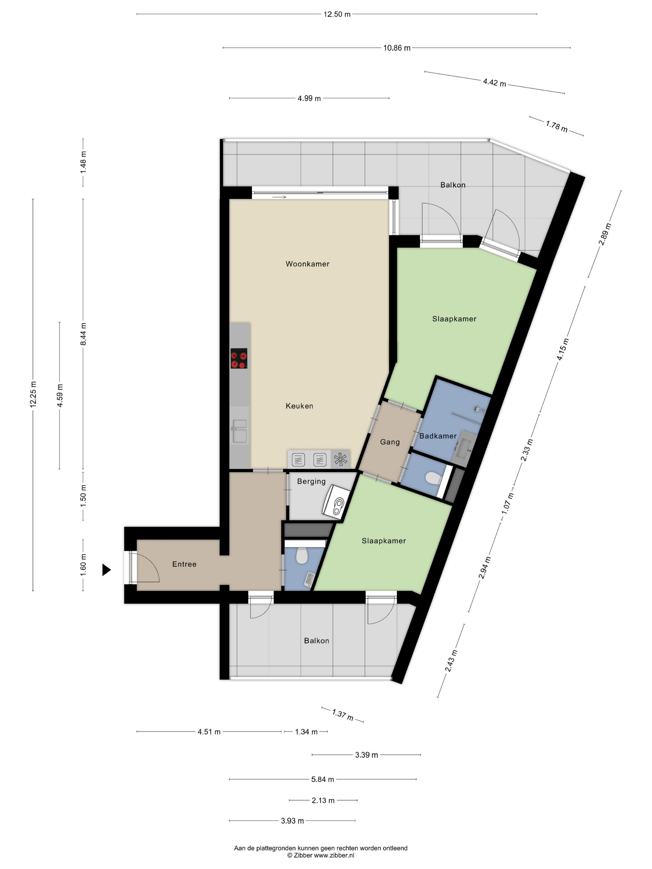 Via een tweede gang bereik je het slaapgedeelte met twee comfortabele slaapkamers, een apart toilet en de badkamer. De badkamer is stijlvol ingericht en voorzien van een inloopdouche en wastafel. Vanuit beide slaapkamers stap je zo een balkon op – ideaal voor een rustig koffiemoment in de ochtendzon.