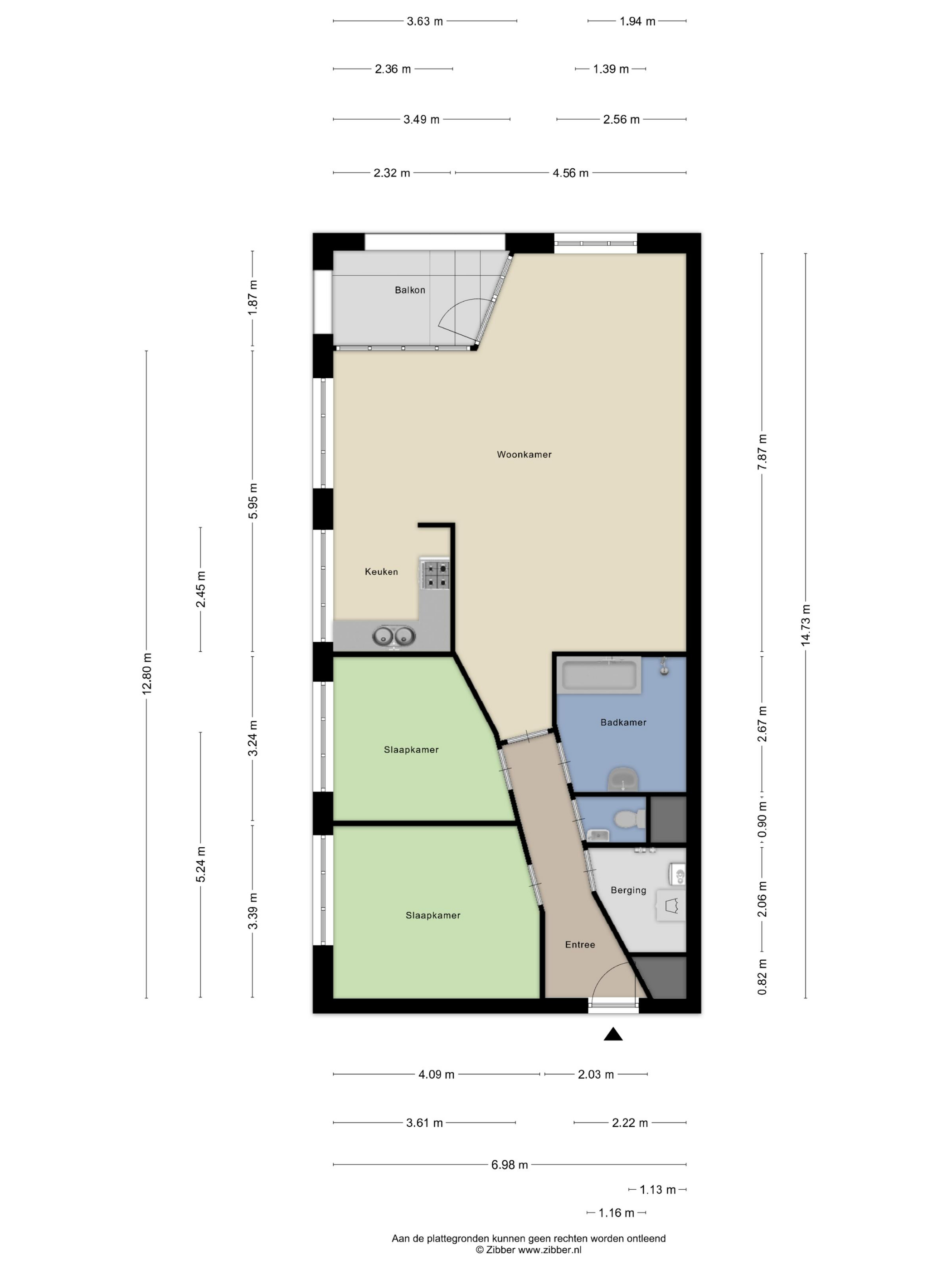 Het appartement heeft twee ruime slaapkamers en een badkamer voorzien van ligbad, inloopdouche en wastafel.