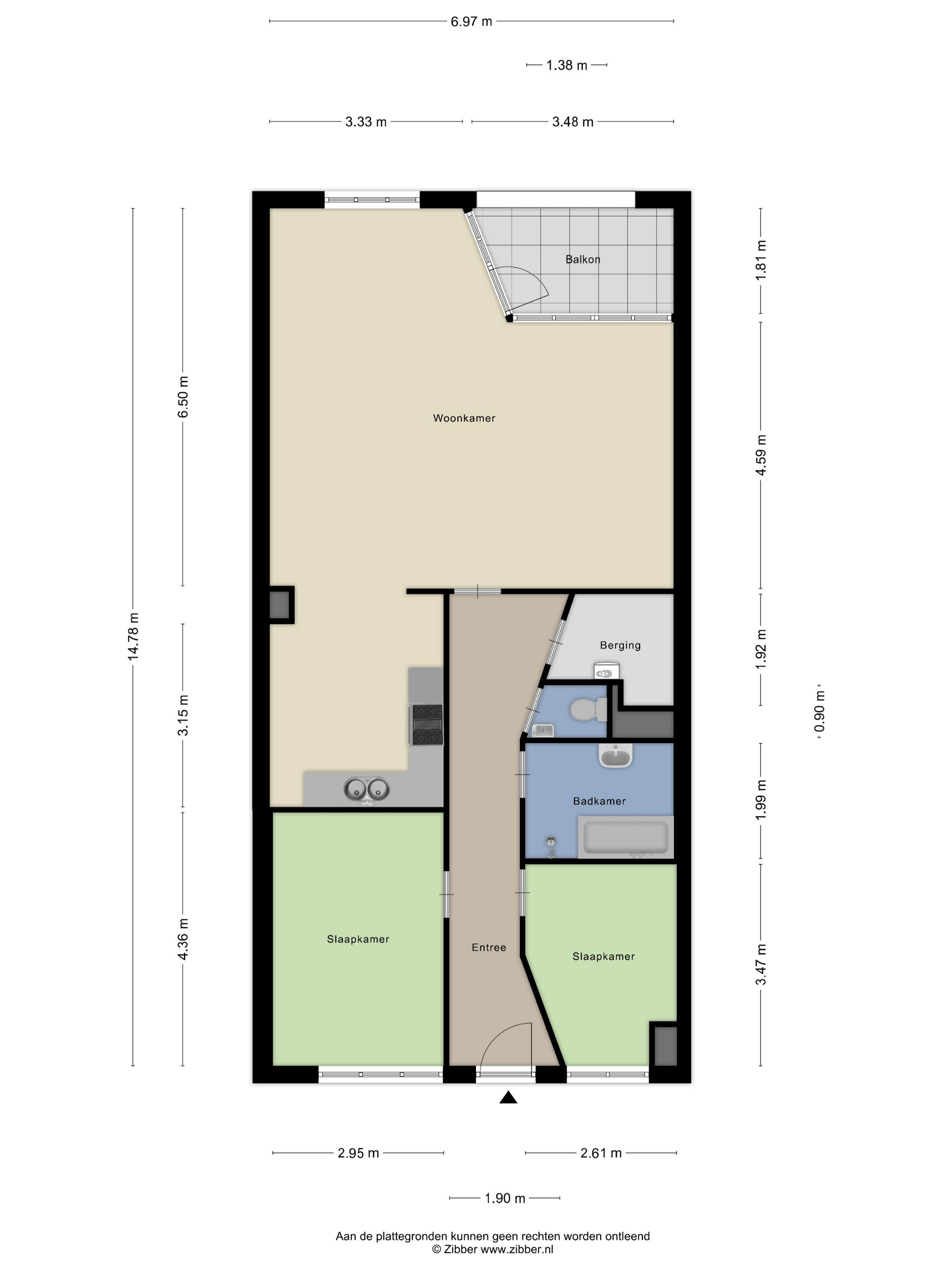 Binnenkomst in de hal met videofoon en nette vloer in laminaat. Vanuit de hal zijn de woonkamer, slaapkamers, toilet, badkamer en berging bereikbaar.