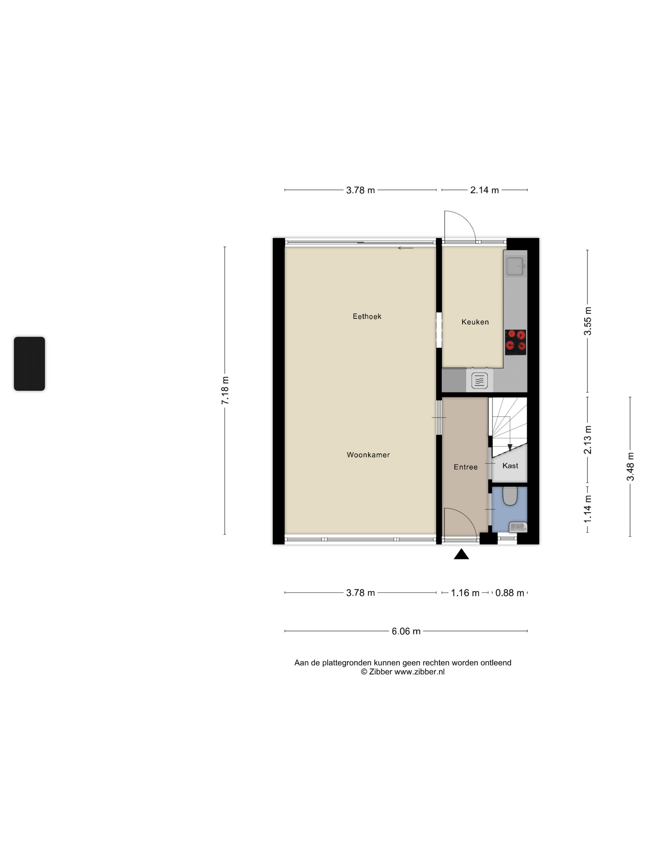 Bij binnenkomst in de hal vind je het toilet met fonteintje, de meterkast met opbergruimte, en de trap naar de eerste verdieping. Vanuit hier is er toegang tot de woonkamer.