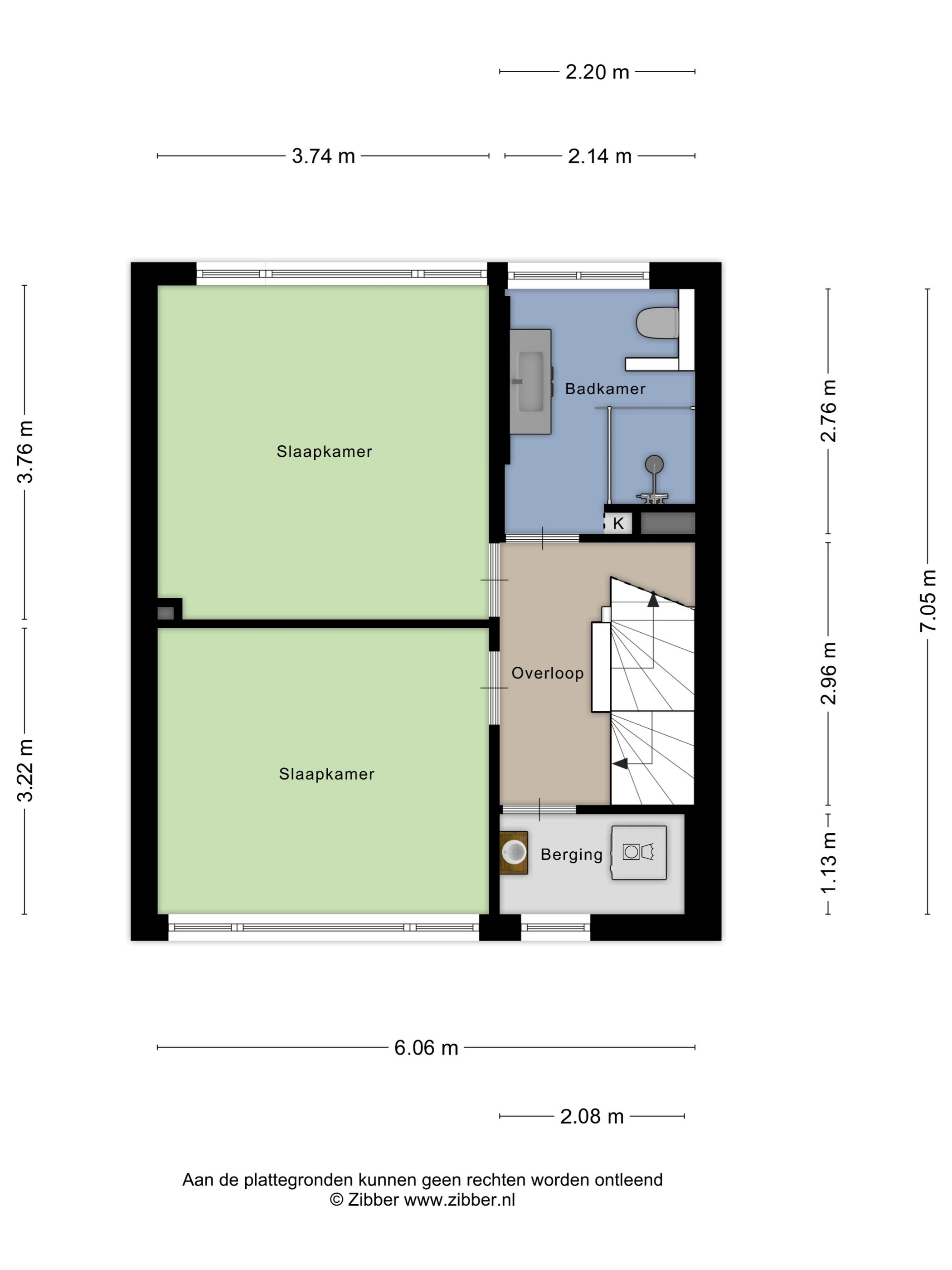 Via een vaste trap is de tweede verdieping bereikbaar. Doordat er drie dakramen zijn geplaatst voorziet deze ruimte van veel daglicht. Deze kamer is te gebruiken als slaapkamer met voldoende opbergruimte.