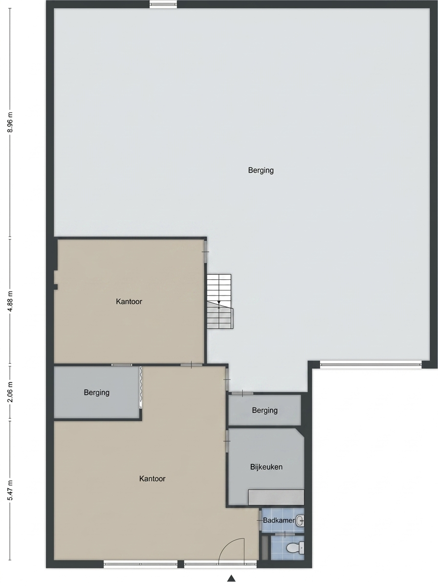 Bedrijfsloods met kantoorruimte en opslagruimte.