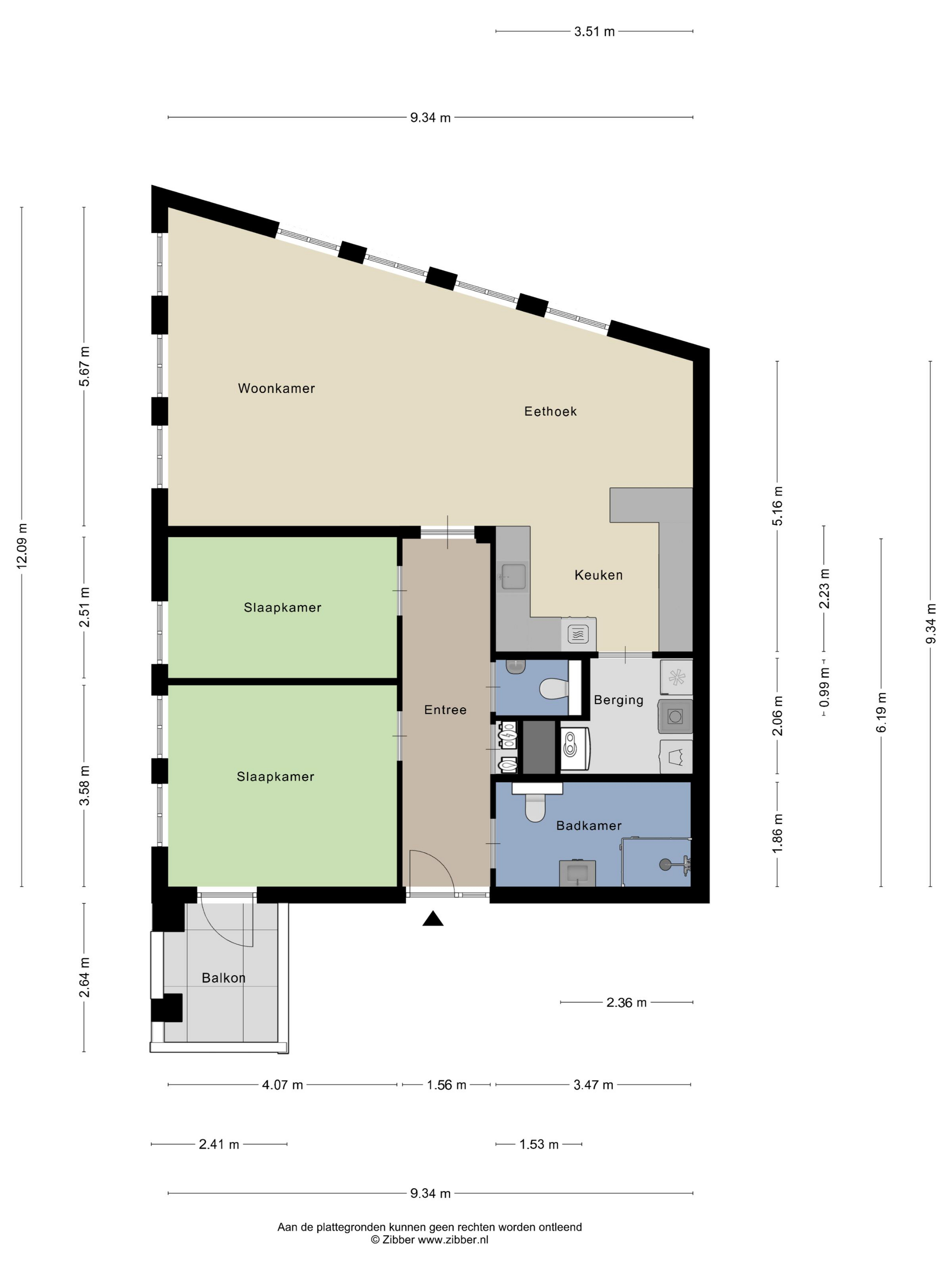 Bij binnenkomst word je verwelkomd door een lange, brede entree die direct een gevoel van ruimte geeft. Aan de linkerzijde bevinden zich twee slaapkamers. De grootste slaapkamer biedt toegang tot een zonnig, op het zuiden gelegen balkon met een prachtig vrij uitzicht; een heerlijke plek om te genieten van de buitenlucht.