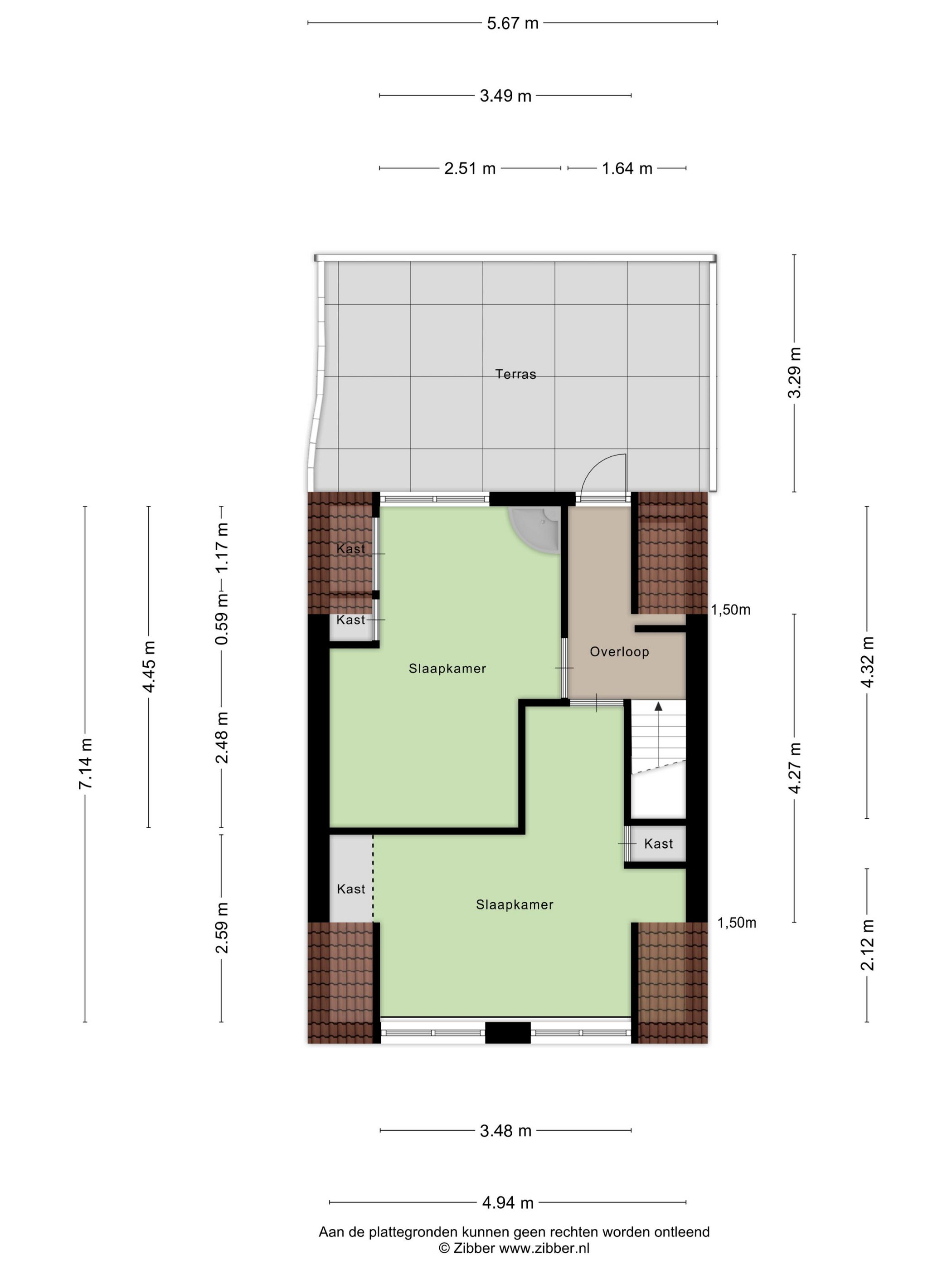 Op de 1e verdieping bevinden zich de overloop met twee slaapkamers en toegang tot het dakterras.