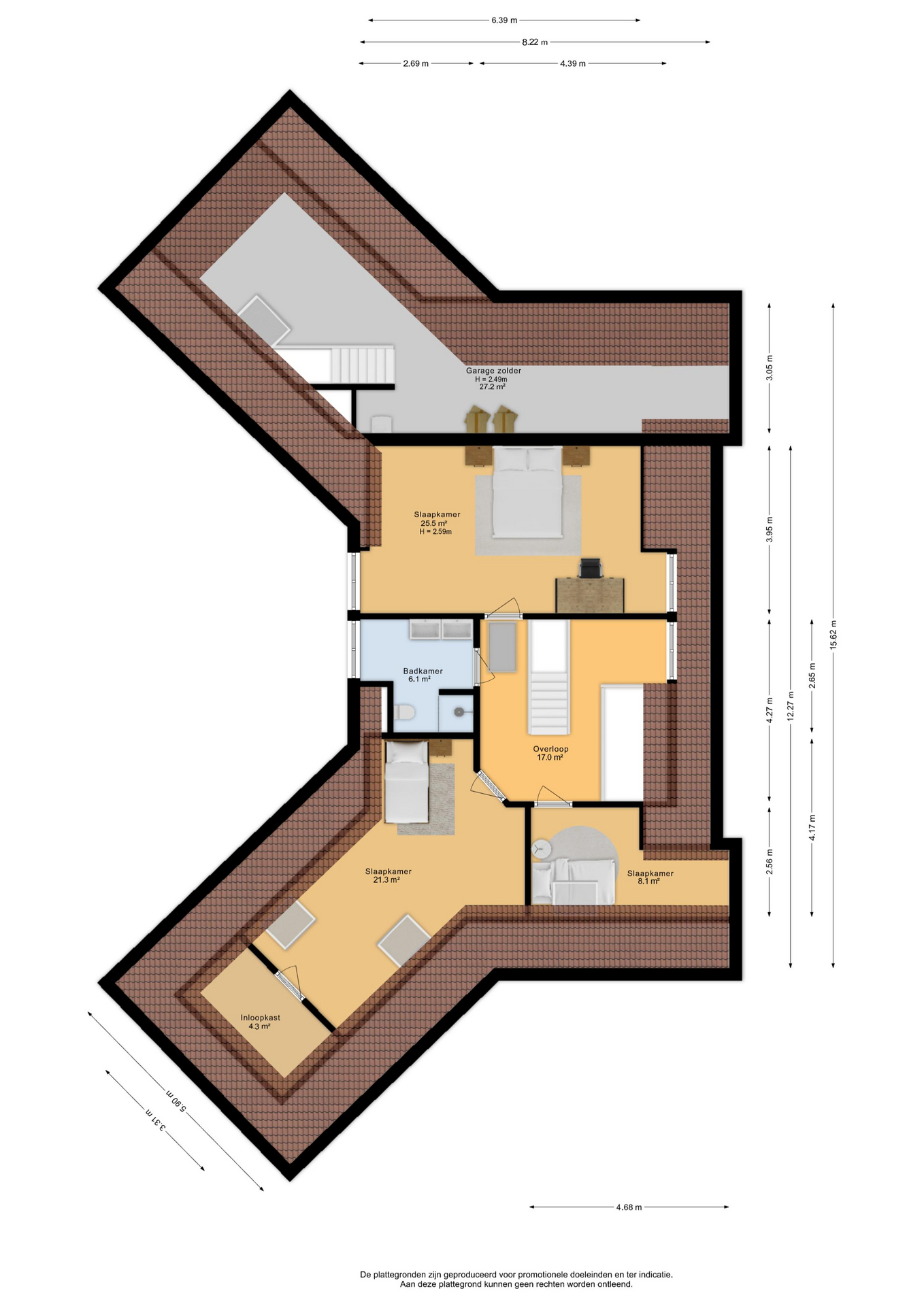 Op de tweede verdieping vind je een ruime bergzolder bereikbaar via vlizotrap.